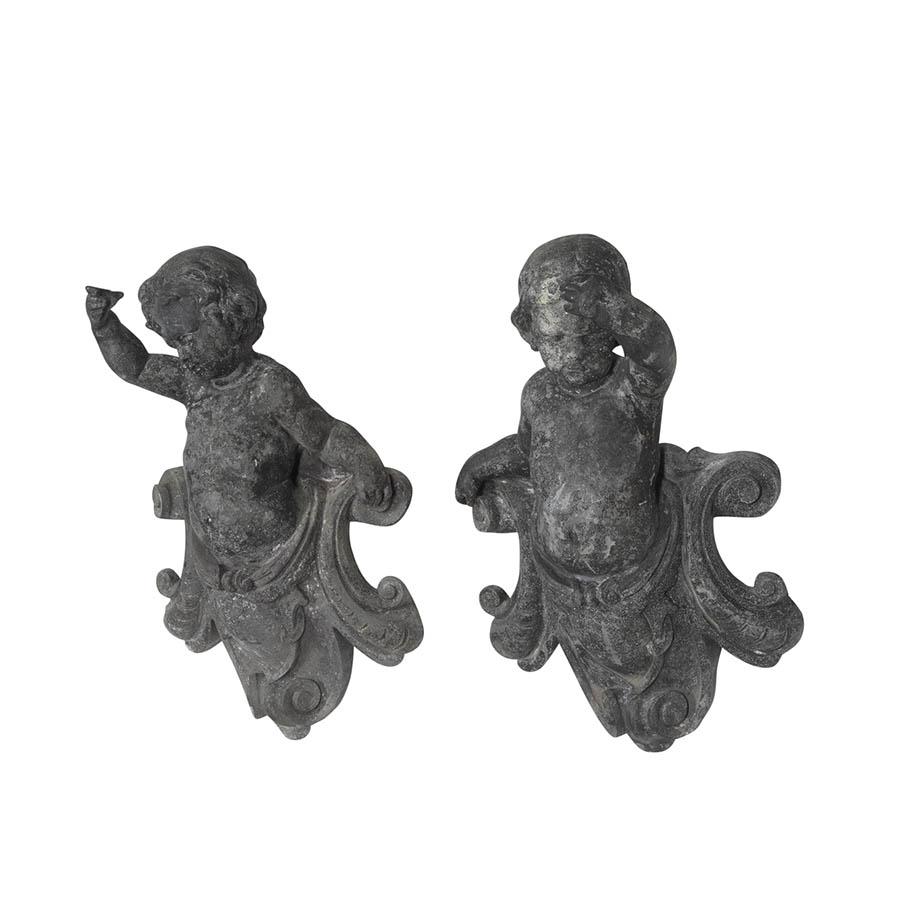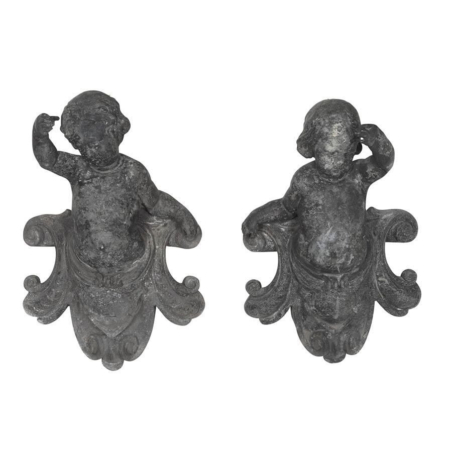 Magnificent pair of 19th Century putti made from cast alloy. Correct pair in left and right arms.