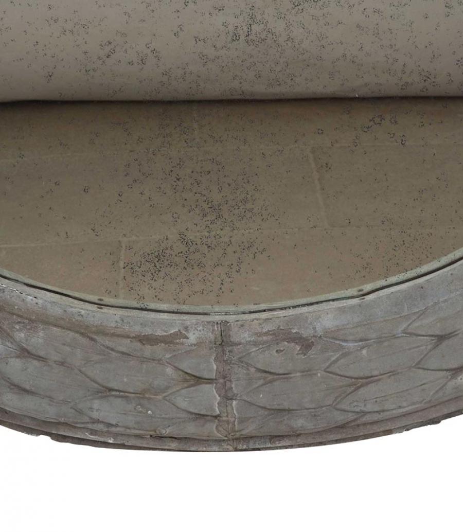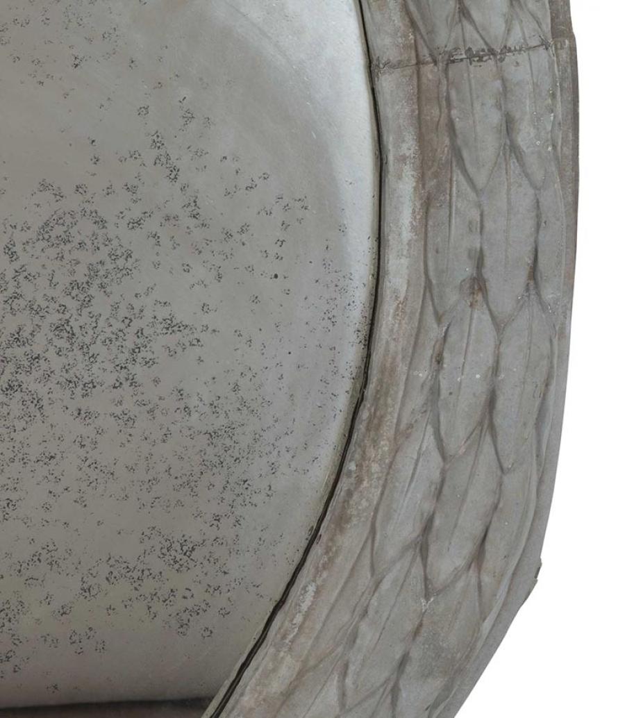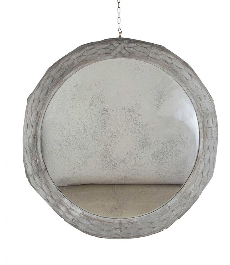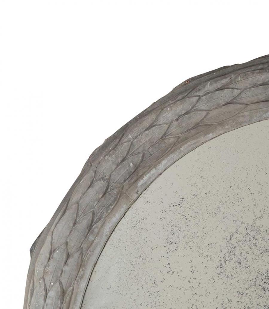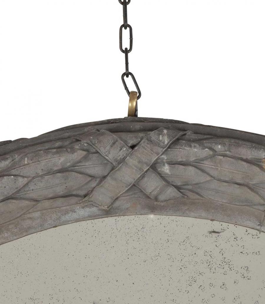 Large 19th Century French zinc window frame converted to a wreath mirror. With a faux mercury glass mirror.