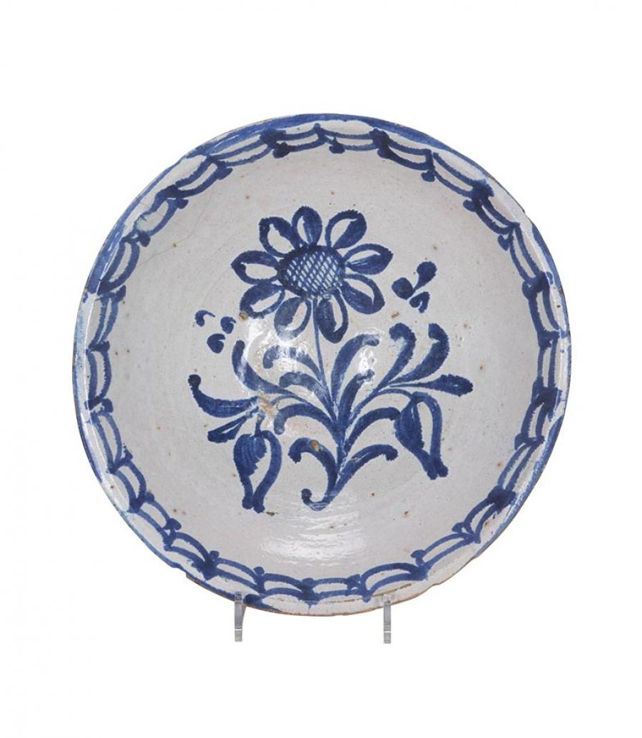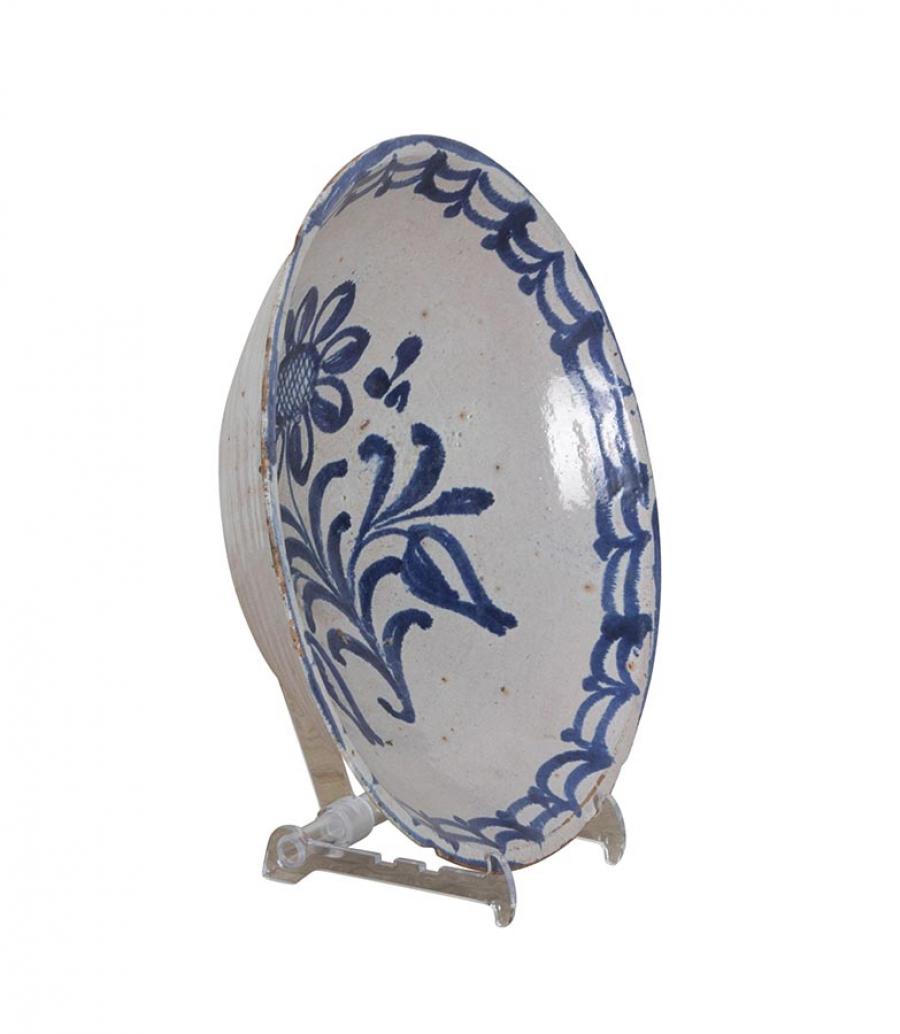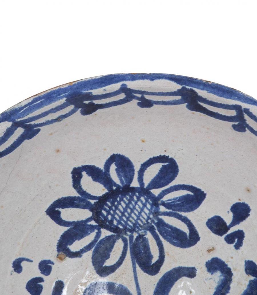 Late 19th Century Spanish blue and white Fajalauza pottery bowl from Granada. Circa 1880.