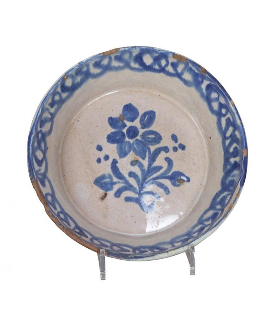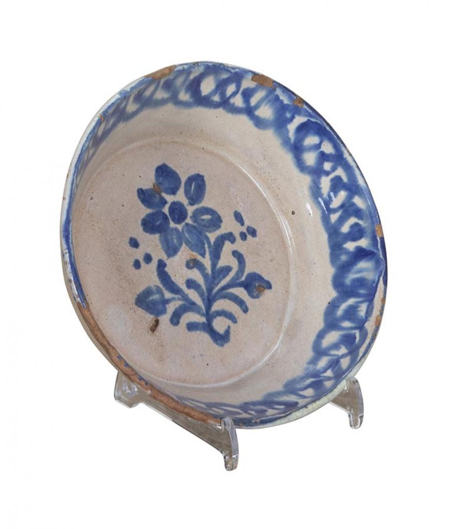 Late 19th Century Spanish blue and white Fajalauza pottery bowl from Granada. Circa 1880.
