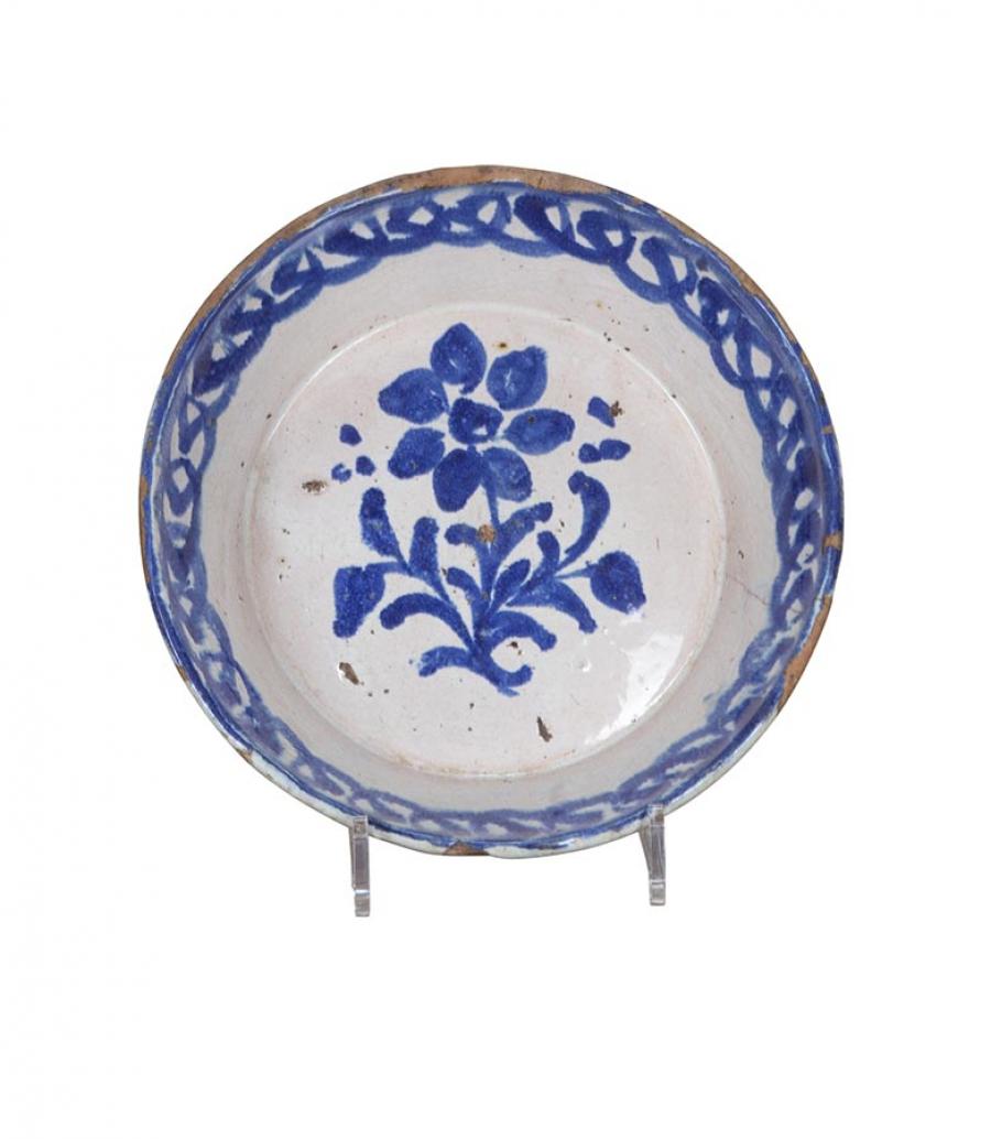 Late 19th Century Spanish blue and white Fajalauza pottery bowl from Granada. Circa 1880.