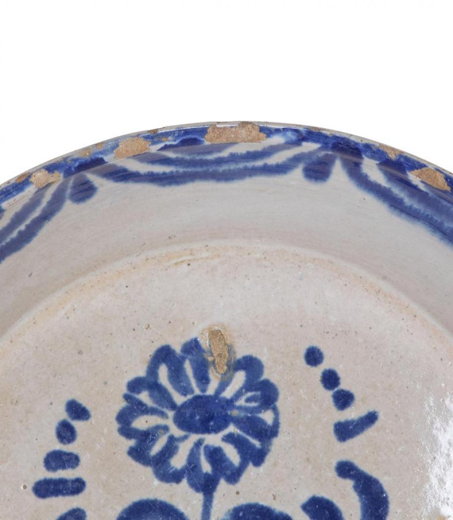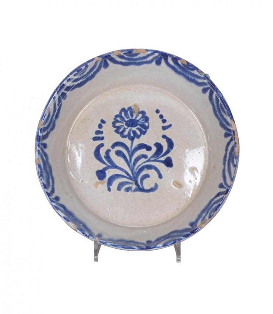 Late 19th Century Spanish blue and white Fajalauza pottery bowl from Granada. Circa 1880.