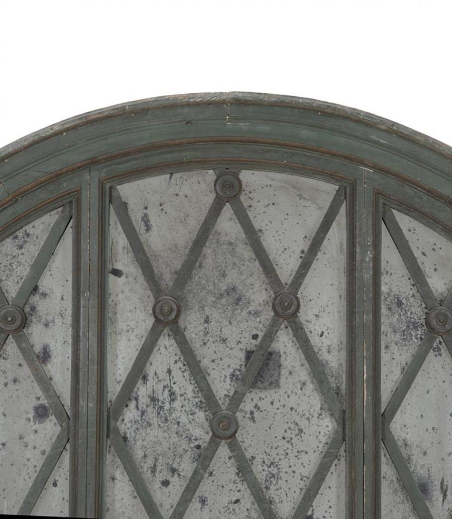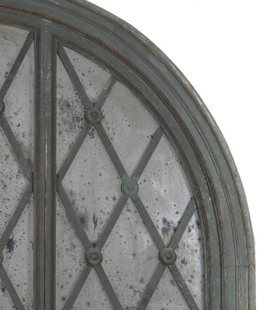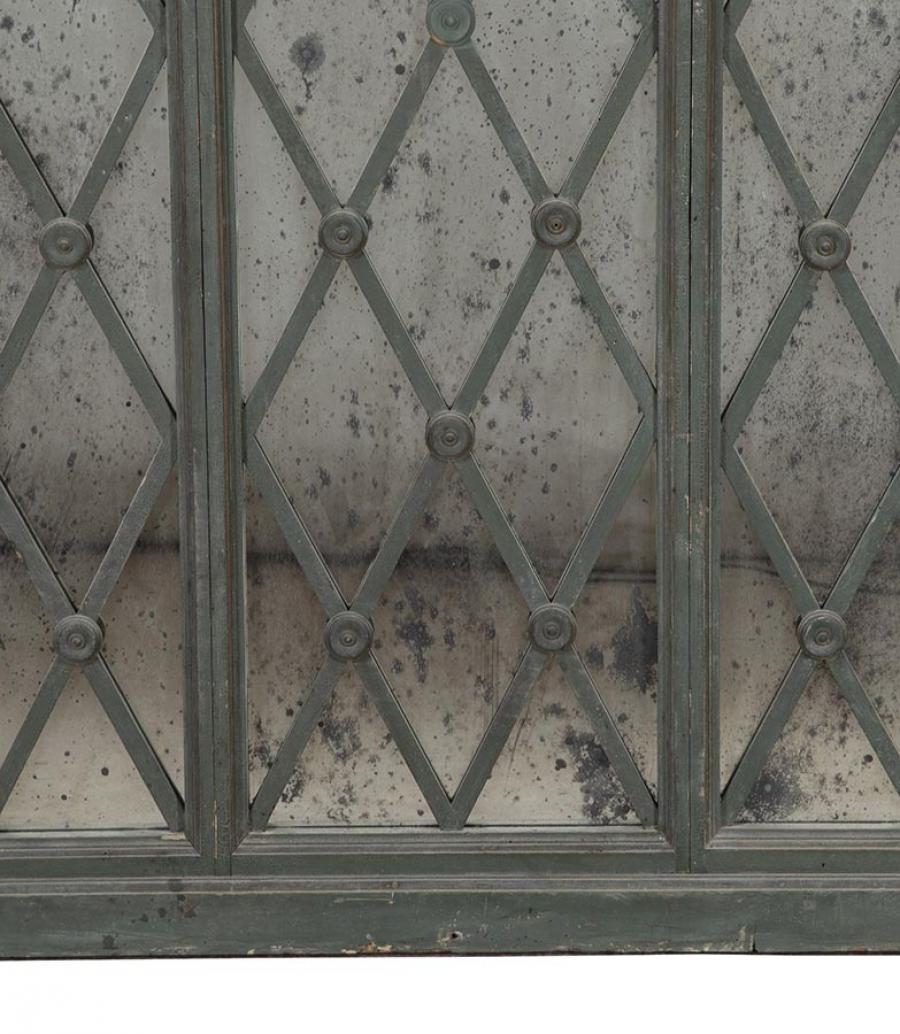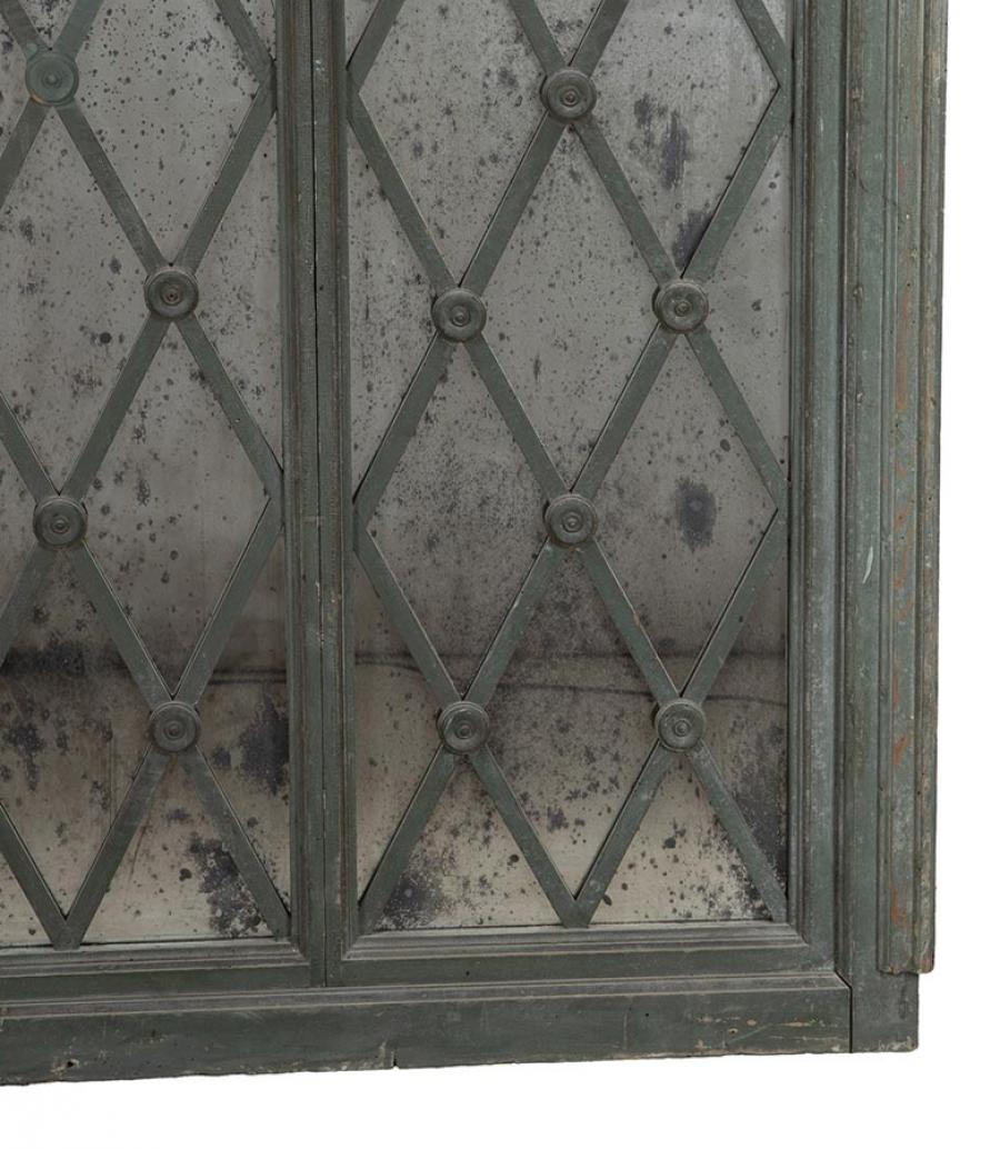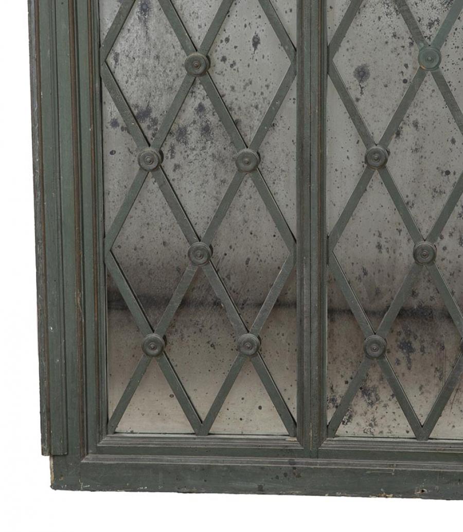 Late 19th Century French wooden window frame. With wooden astragal glazed wooden cross bars with rosette finals. Later mirrored with faux mercury glass. Circa 1880.