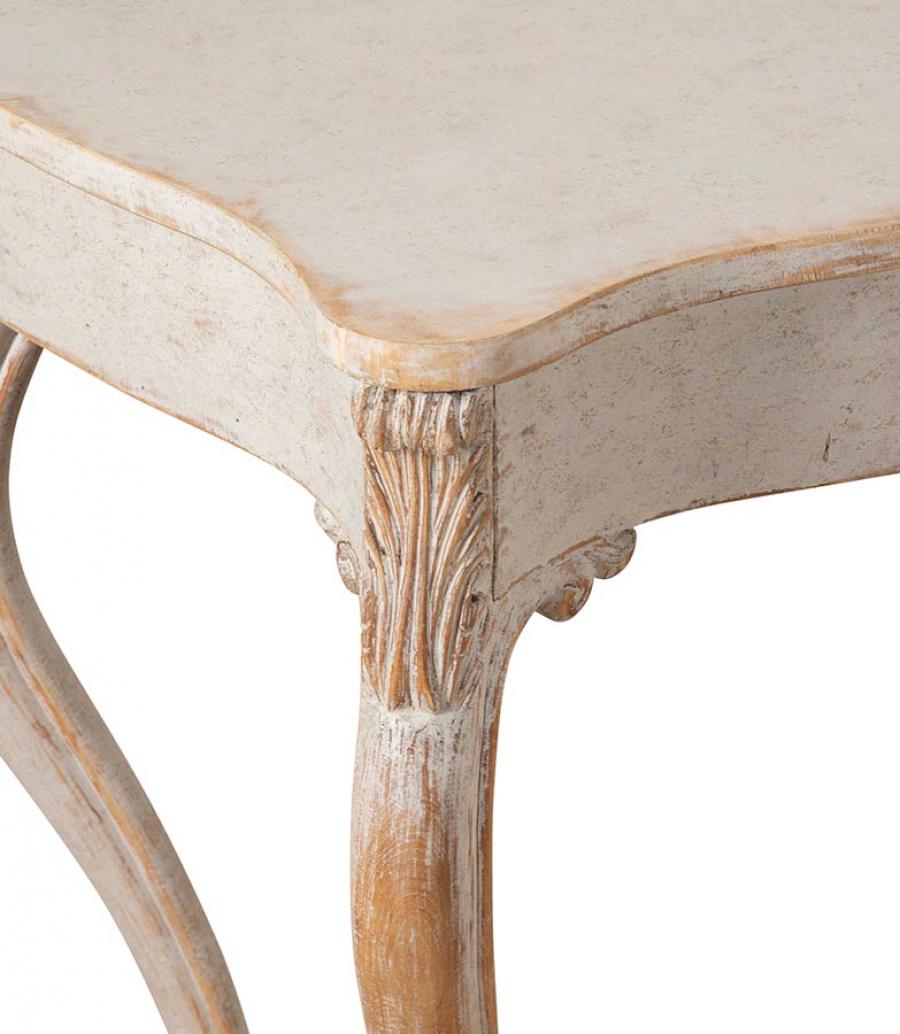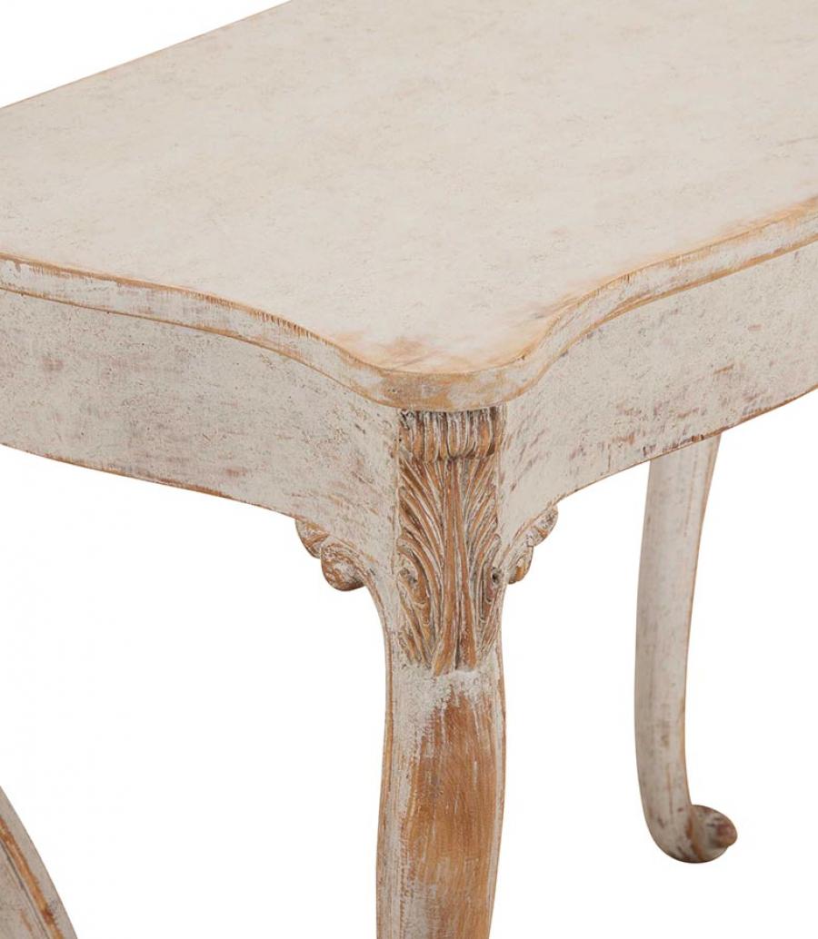 Decorative cabriolet legs curtailing with carved detailing and repainted in soft grey. Circa 1880.