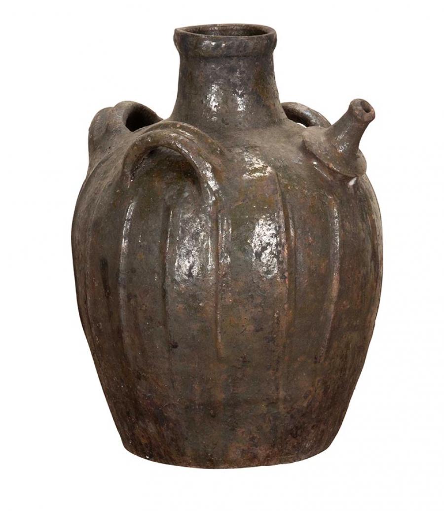 Decorative late 19th Century French walnut oil jar. With time worn patina. Of good size and proportions. Circa 1880.