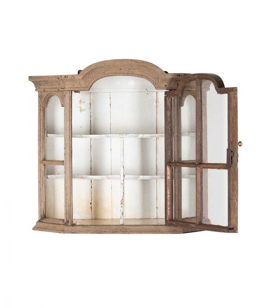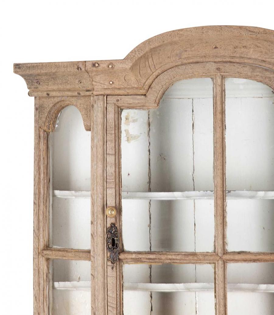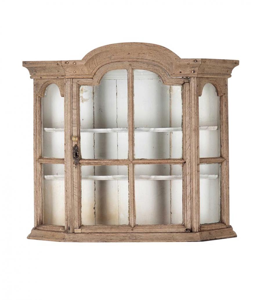 Late 19th Century Dutch wall hanging vitrine. Bleached oak with glazed panels and door opening to shelved display. Circa 1880.