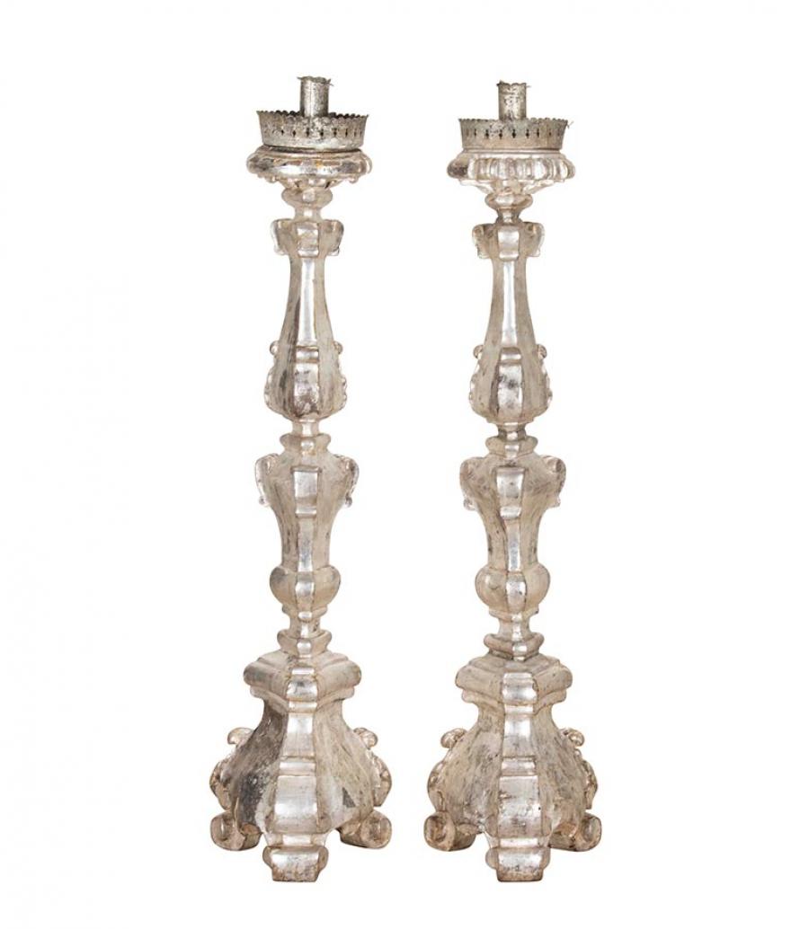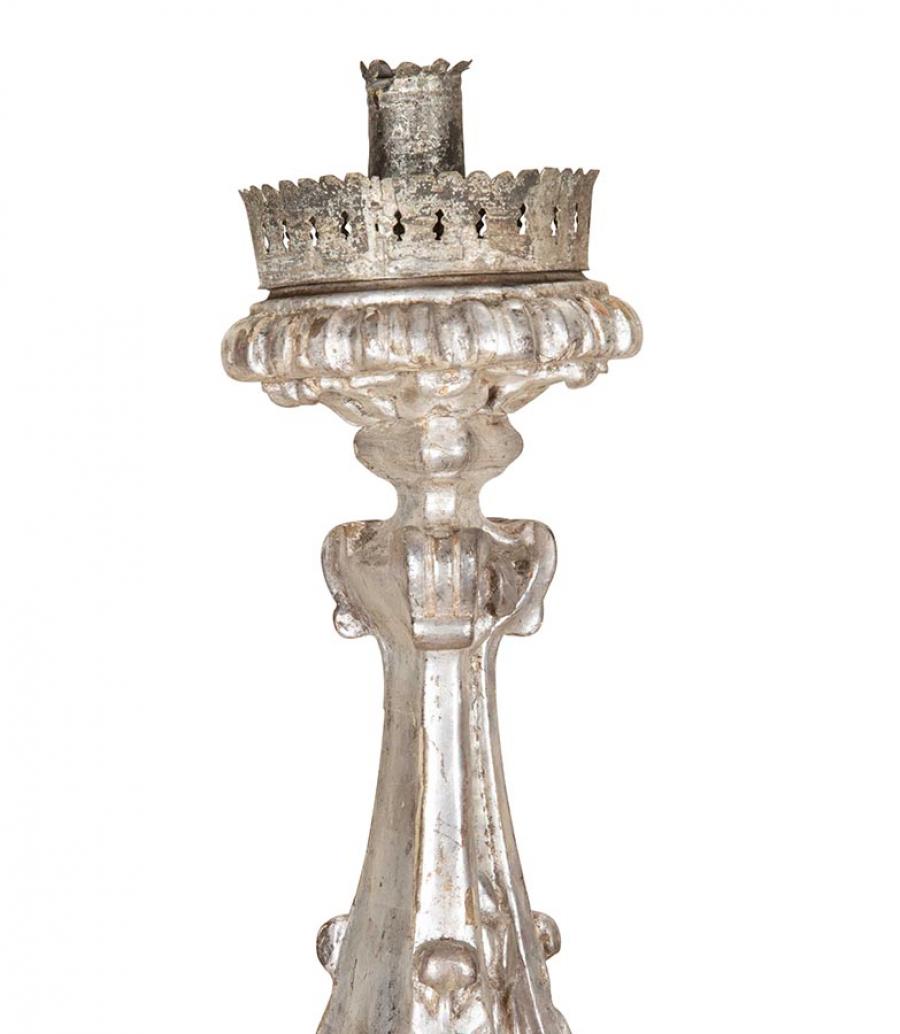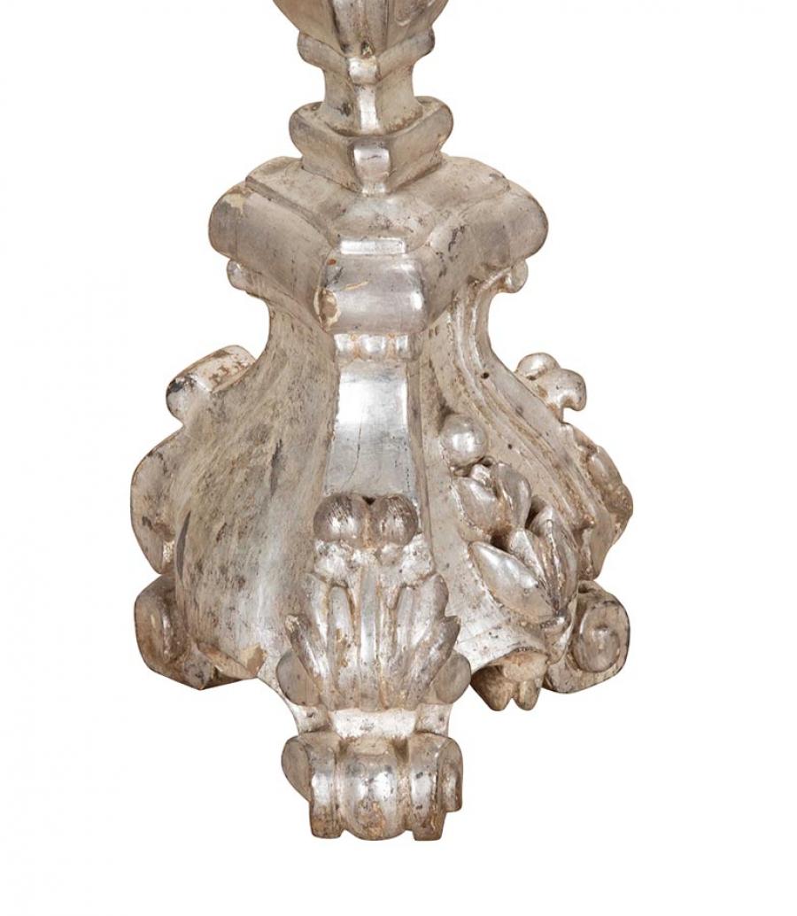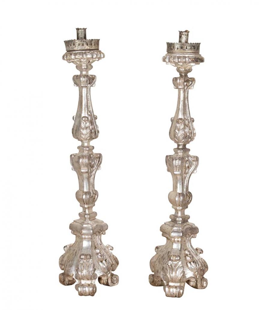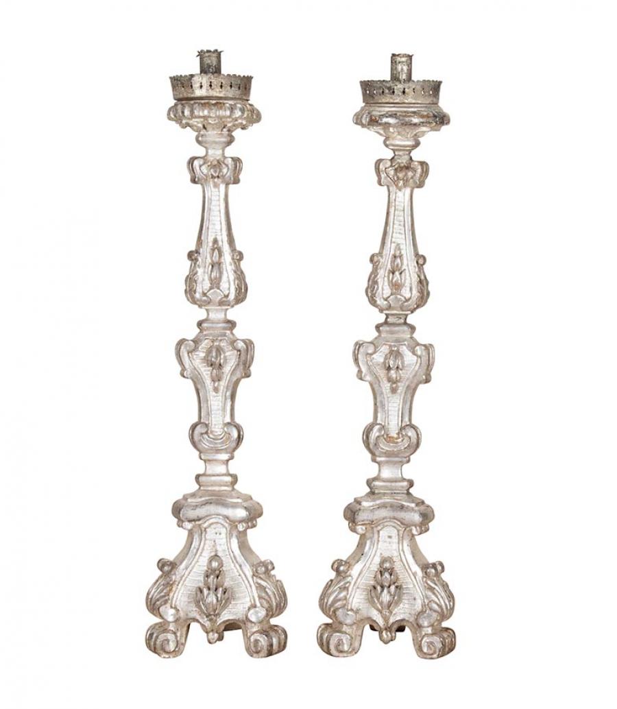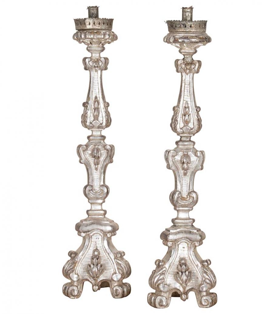 Pair of large late 19th Century Italian silver gilt carved wood candlesticks. Circa 1880.