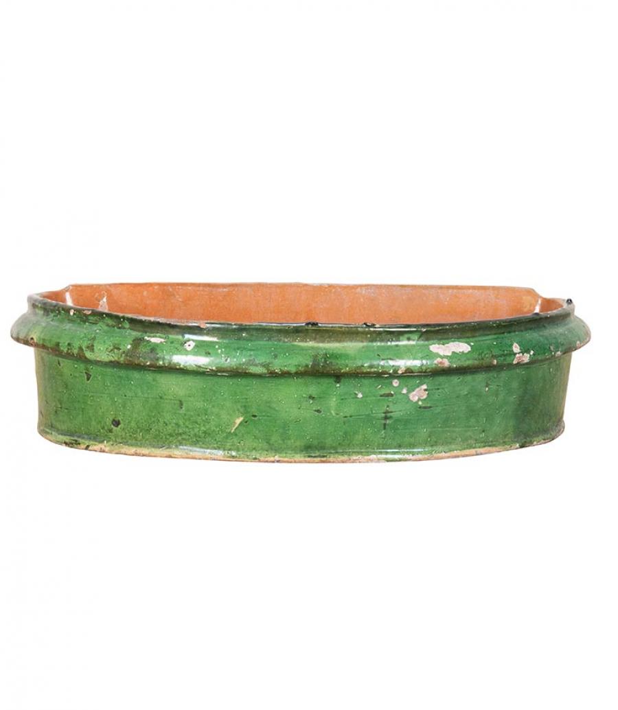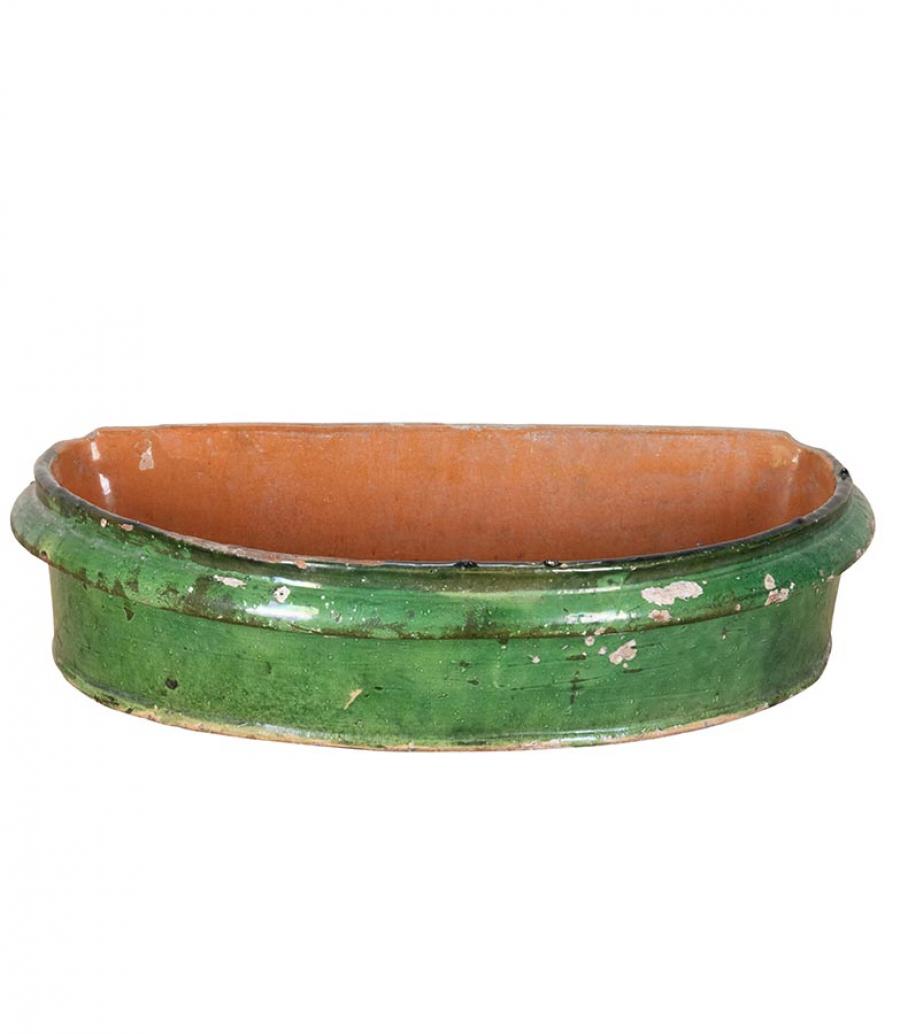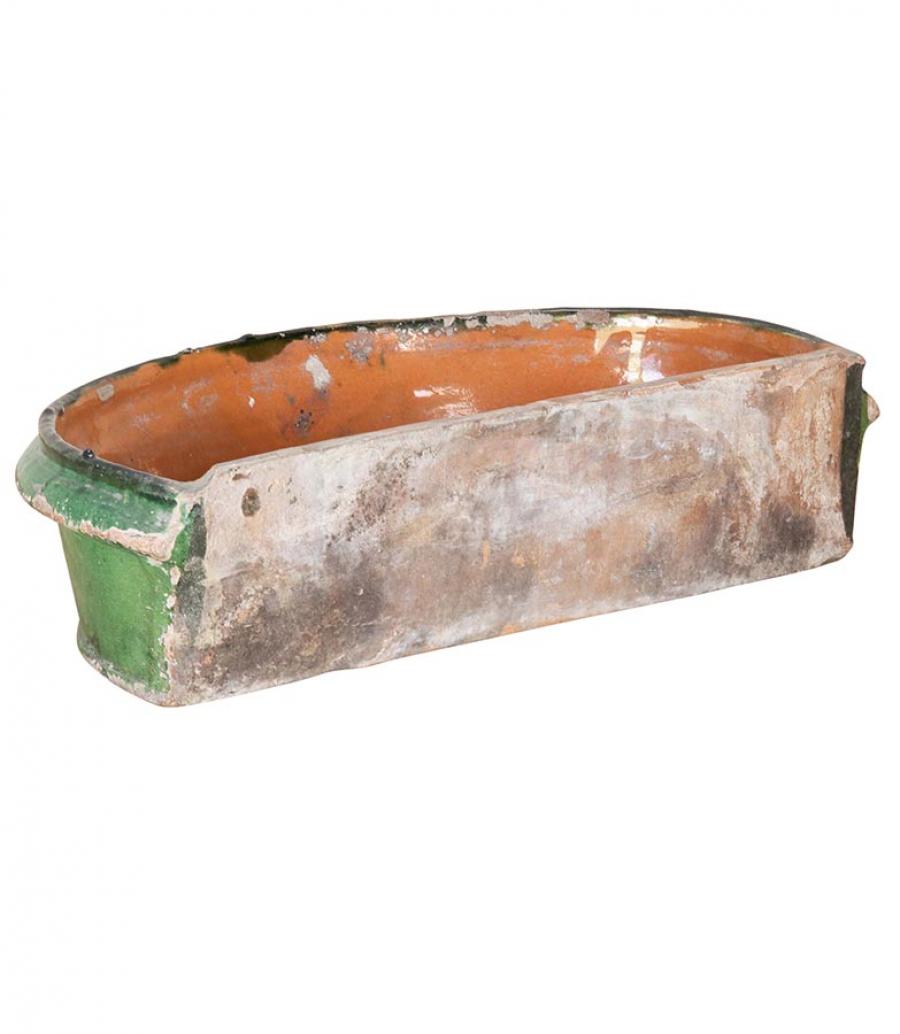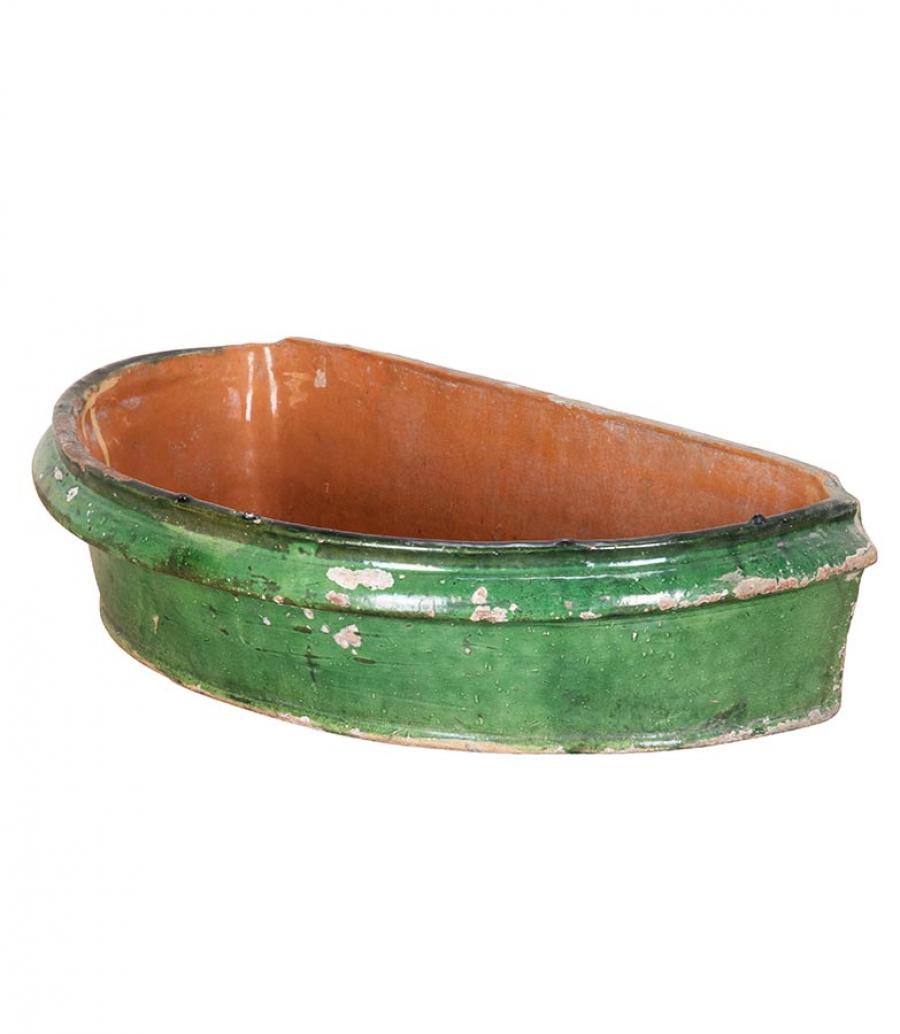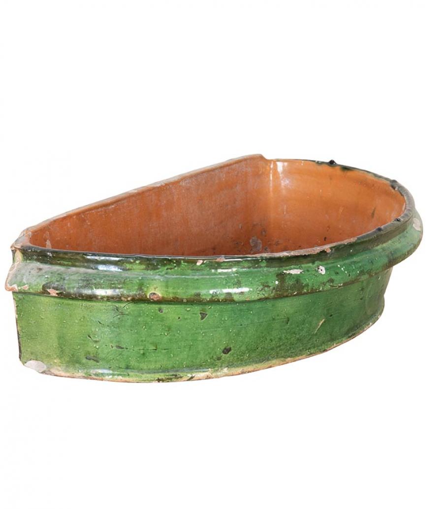 19th Century French crevice shape herb planter. With decorative green glaze.
