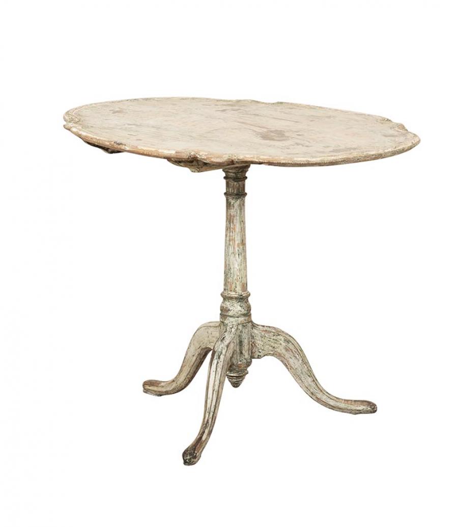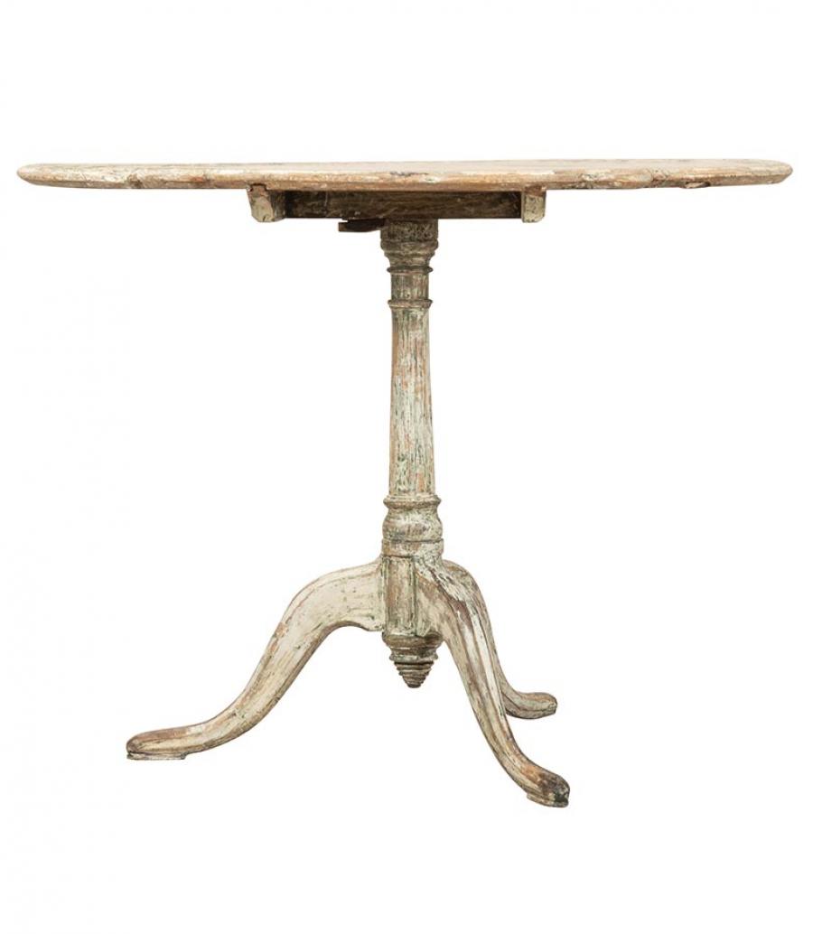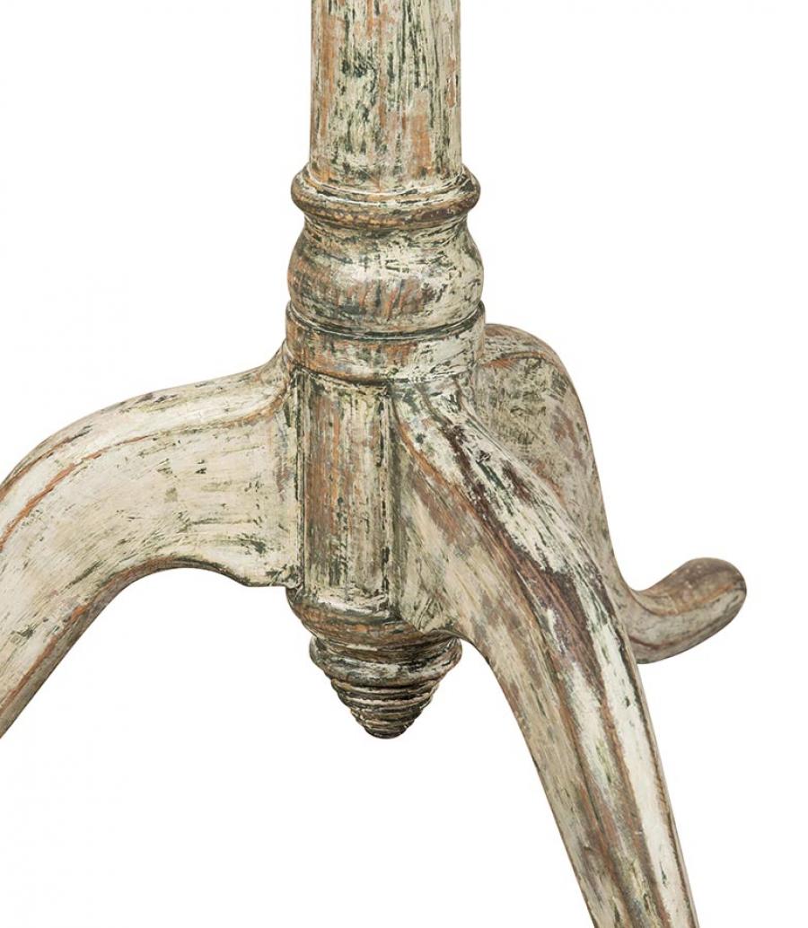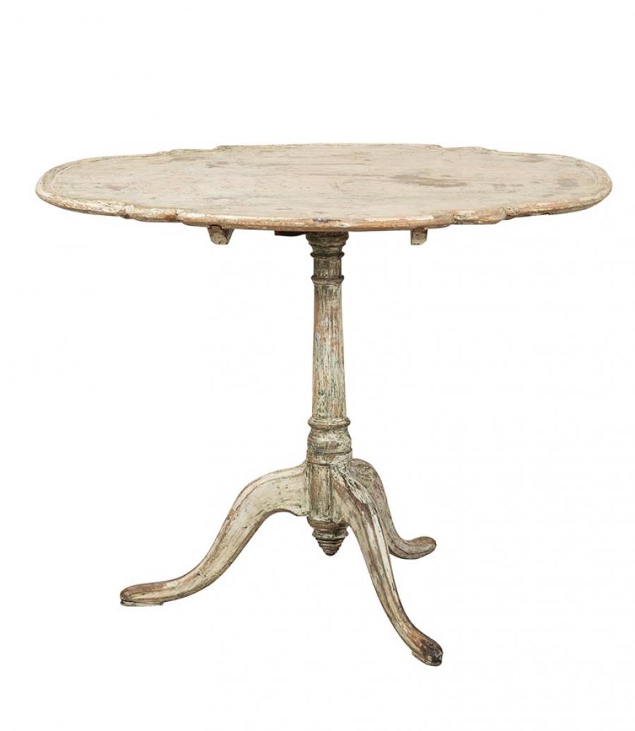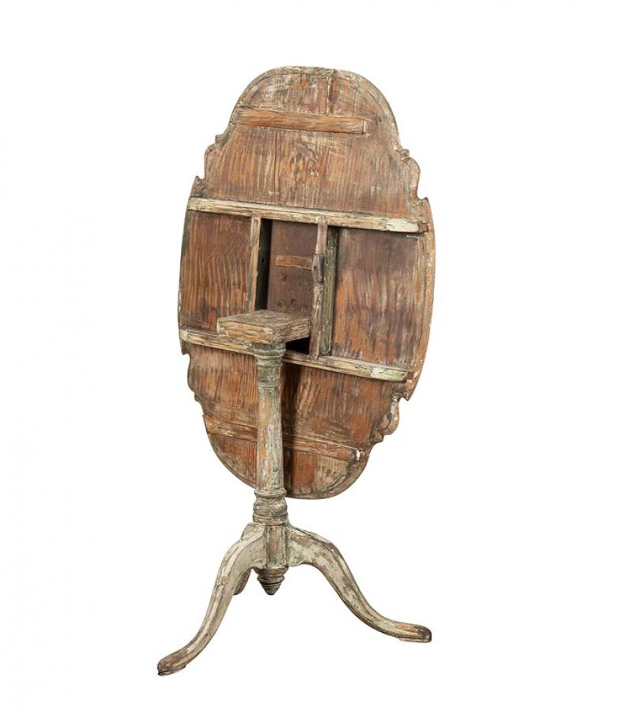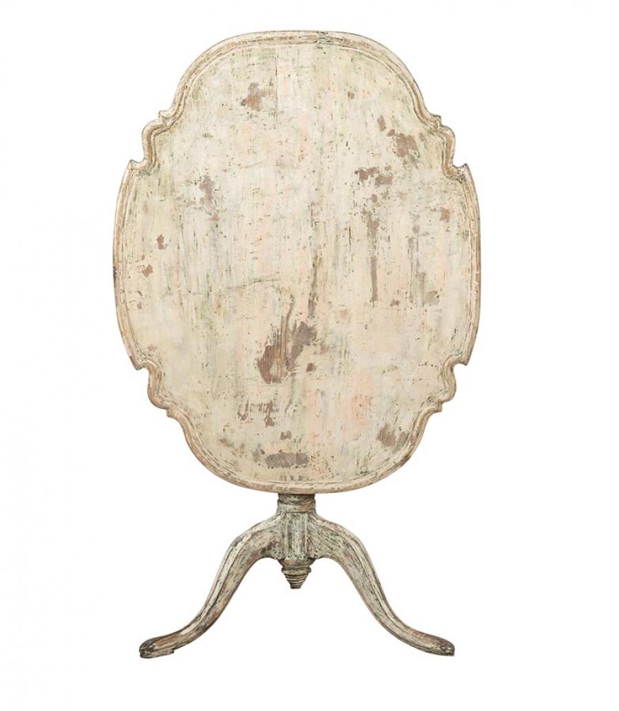 Late 18th Century Swedish Rococo folding table. Decorative shape carving and scraped to secondary paint. Circa 1780.