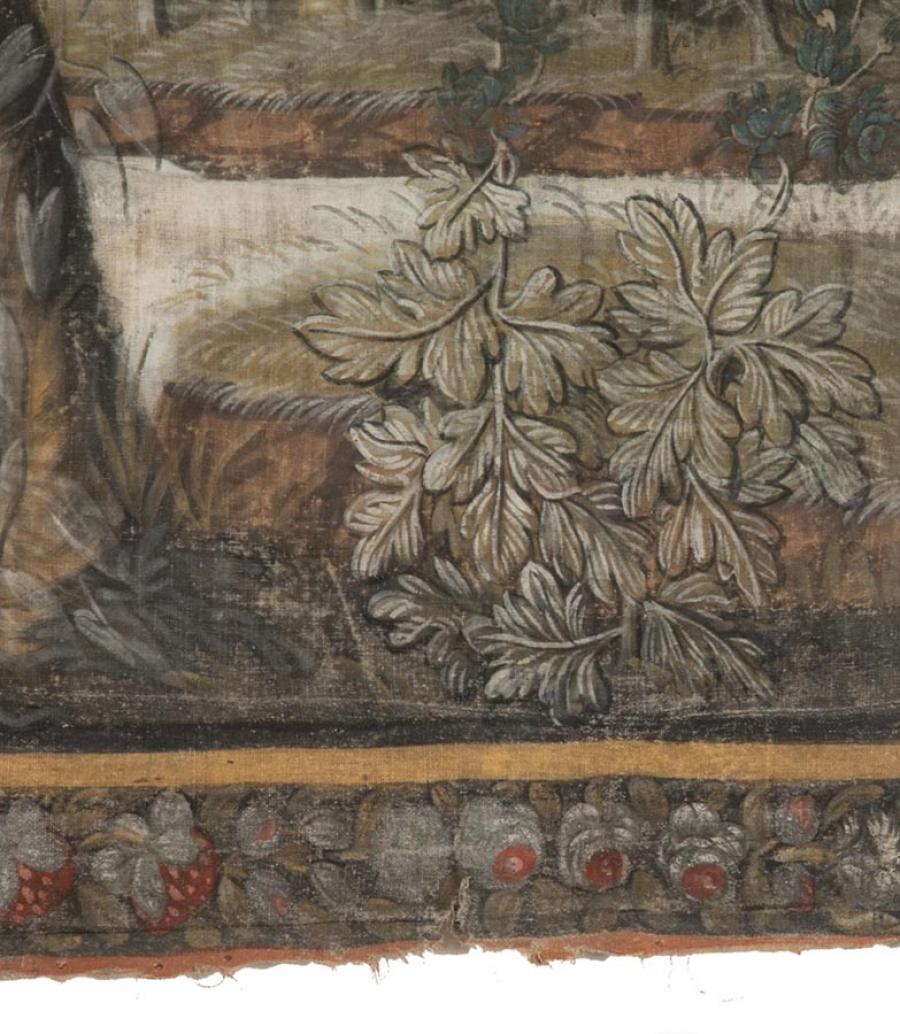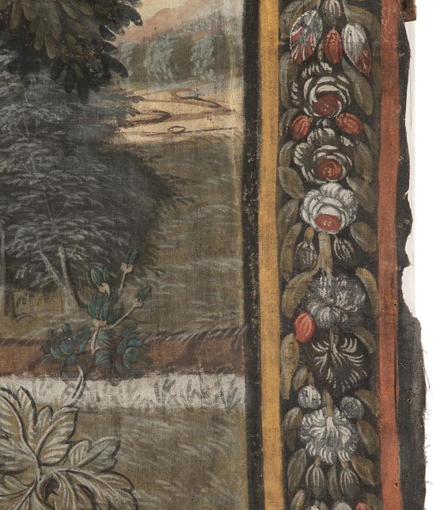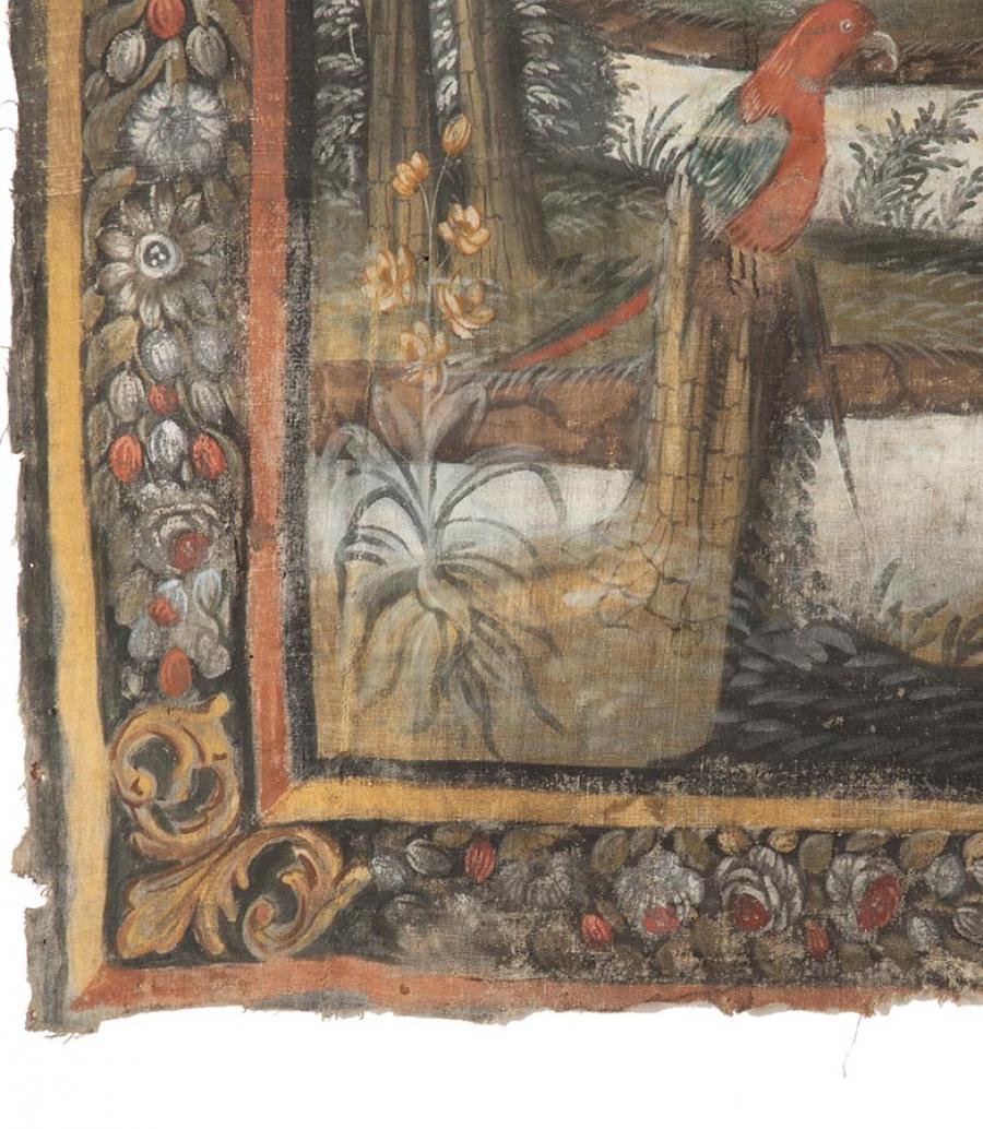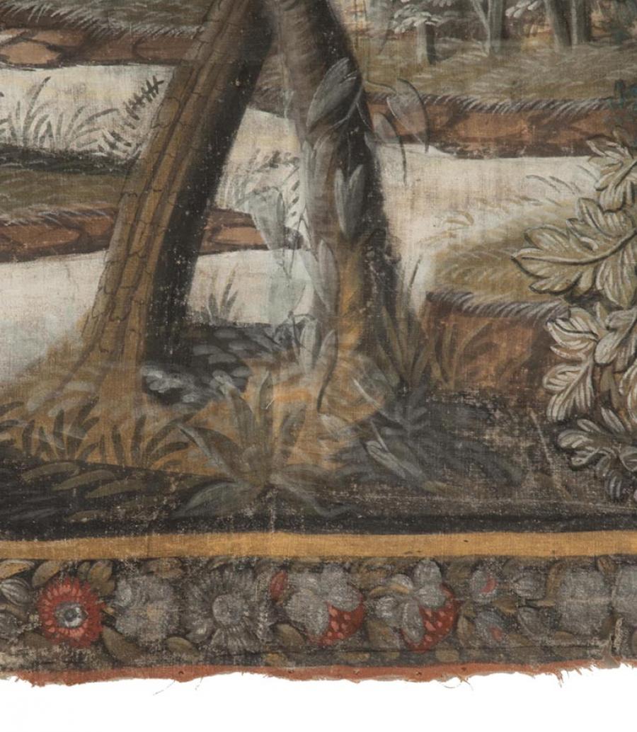 Exceptional late 18th Century French canvas. Painted on linen with egg tempura of three birds in the grounds of a chateau forest. A true decorator's piece.