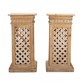 Pair of late 19th Century French carved wooden columns. With decorative trellis detail. Ideal display pieces for artwork or urns. Circa 1880.