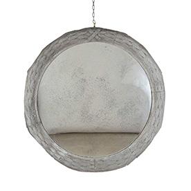 Large 19th Century French zinc window frame converted to a wreath mirror. With a faux mercury glass mirror.