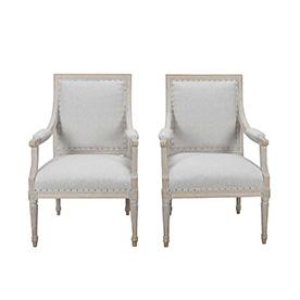 Pair of early 20th Century Swedish Gustavian style chairs. Simply elegant, repainted in a soft grey. Reupholstered in linen. Circa 1910.