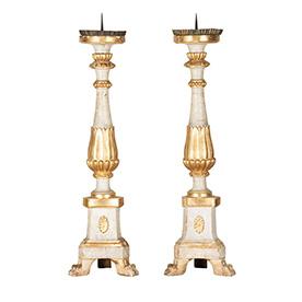 Pair of late 19th Century Italian silver gilt carved wood candle sticks. Circa 1880.